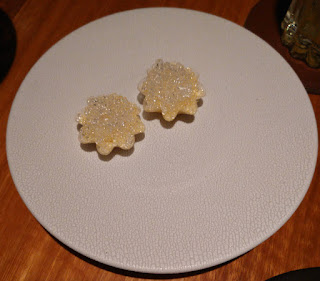 Prunes and Panettone - unlike the last dish which was a non-dessert eaters dessert, this dish is sweetness on sweetness with more sweetness. Given that I'm not a fan of sweet things my reaction to this was yuk. It was the only disappointment of the evening, it is such a pity it came so late in the meal, as it will affect my overall perception. No thank you. Drew, who is a sweet eater also found it too sweet even for him. He particularly didn't like the fact that instead of natural sweetness this dessert seemed to be made of reshaped sugar, rather than distinctive flavours.